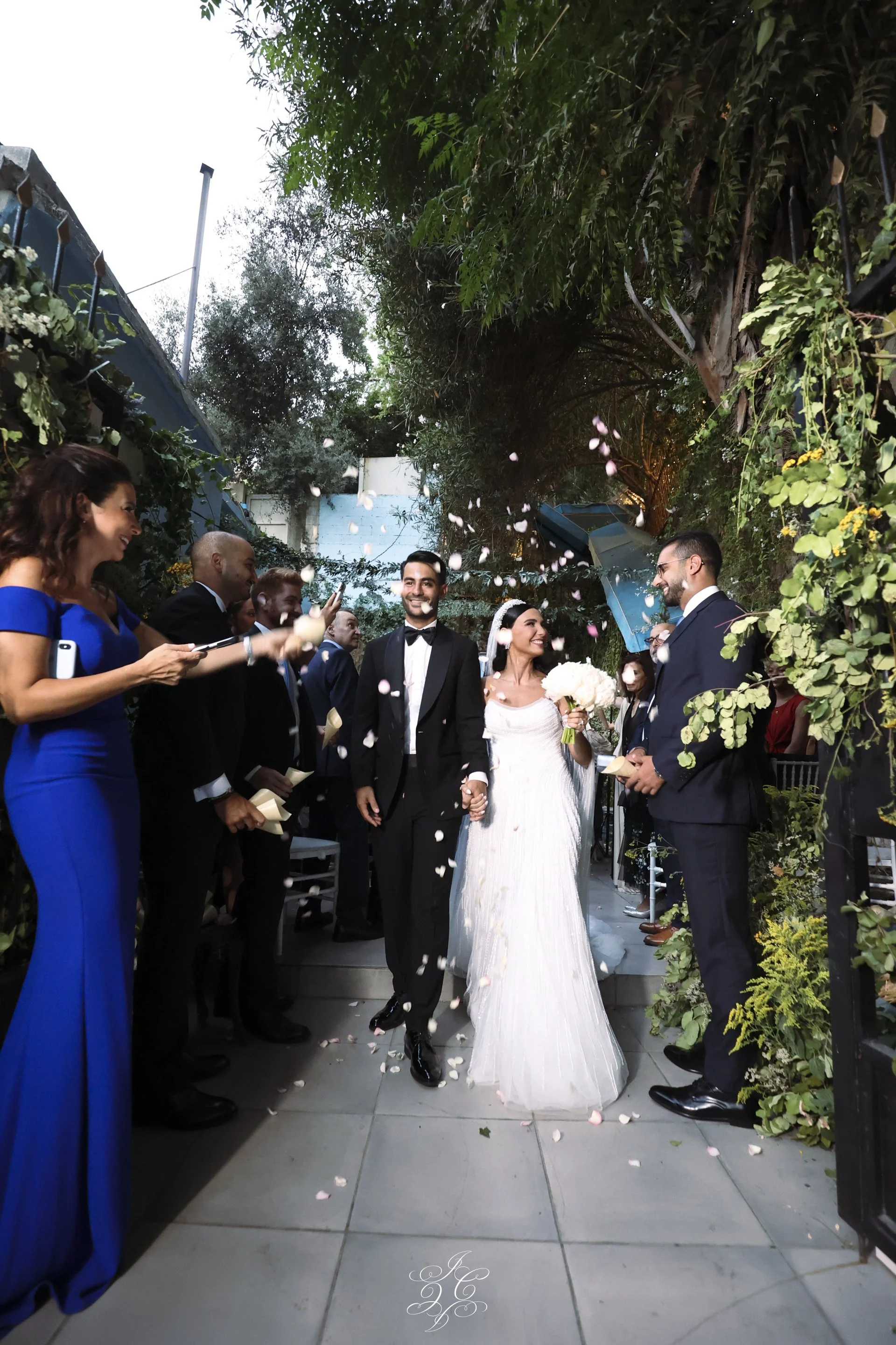 This outdoor wedding unfolded like a timeless soirée, where lush greenery, curated tablescapes, and soft lighting transformed the space into a refined garden escape. Guests dined under the trees, surrounded by layered textures, natural tones, and subtle elegance.